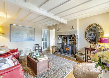 - Woodburning stove and exposed beams