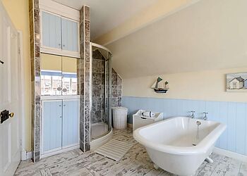 Calculate one bathroom per four guests minimum. Large holiday houses often have ensuites but shared bathrooms create morning bottlenecks. Properties that sleep 10 should have at least three bathrooms. For cottages for 10 or more guests we always check bathroom numbers first.